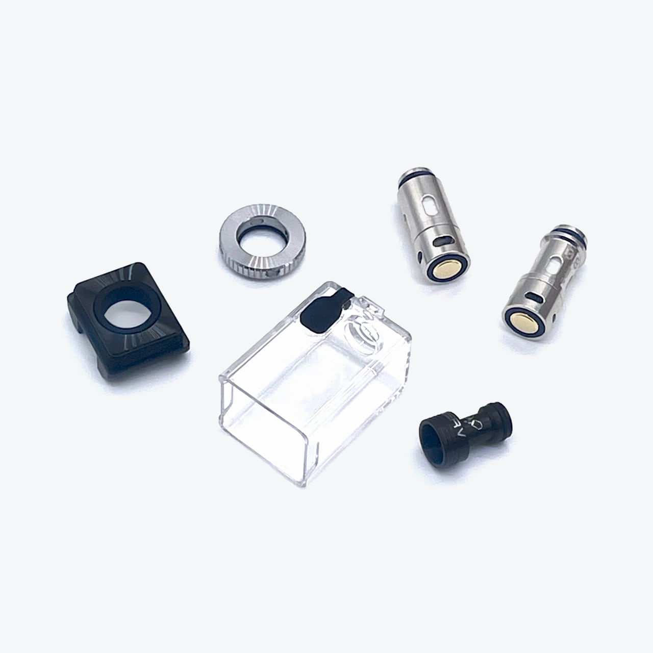 PCTG製のタンクとエアフローコントロールが可能なベースパーツ、0.6Ωと1.2ΩのNERVコイルが各1個付属します。